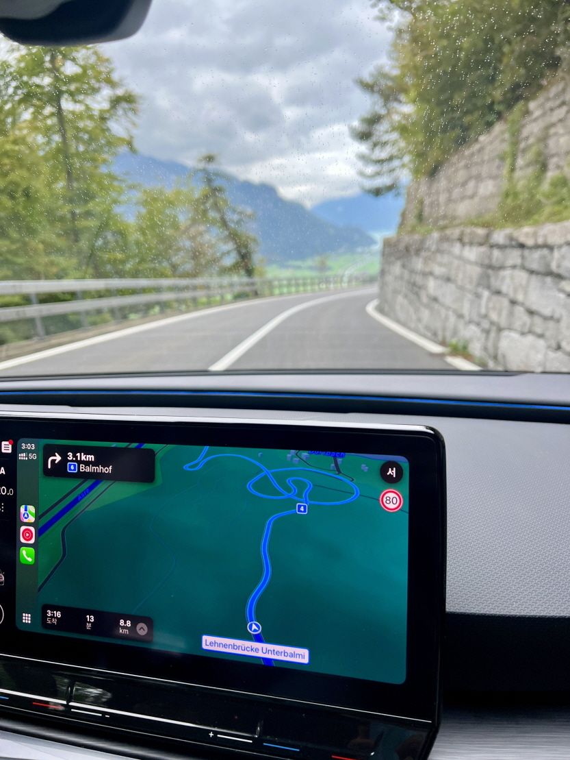 스위스 운전자들은 익숙한지 모두 씽씽 잘 달리는 편이라 뒤에서 바짝 붙어 쪼는 경우가 많습니다.
