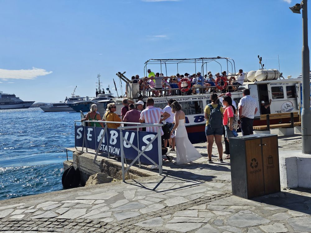 페리를 이용하여서 미코노스에 도착해서도 난감한 일이 있었 습니다 신항구에 내렸었는데 숙소까지 가려면 버스를 타고 가야하는것인줄 알고 찾아다니다가 관광버스 정류장에서 마냥 기다리고 있었는데 버스에서 내리셨던 어르신께서 사진을 찍어주시라고 요청하셨었습니다 짐은 무겁고 숙소를 찾아가야하는 상황이라 관광가이드분께서 사진찍어주신것에 대한 감사를 표시하시길래 숙소를 찾아가는 방법을 여쭈어 보니 상냥하게 알려주셨습니다 미코노스는 버스보다도 해변사이사이를 연결해주는 씨버스를 타라고 하셔서 다행히 올드포트에 가는 도움을 받을 수 있었습니다