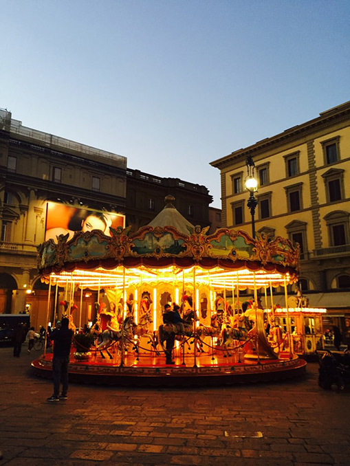 길을 지나가는데 공연을 하거나 밤의 길거리에서 회전목마도 타보고 유명한 음식점에서 음식도 먹고